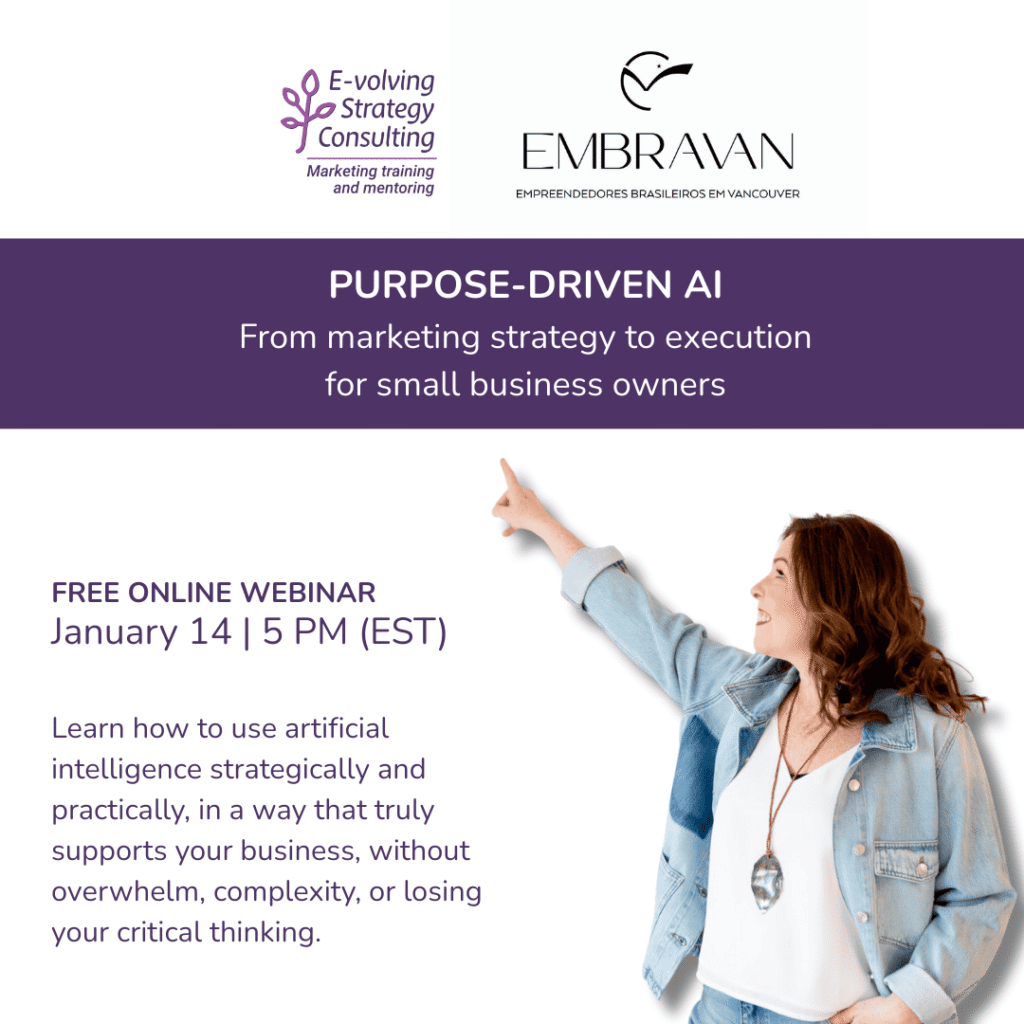 AI with Purpose: From Planning to Execution in Marketing for Micro-Entrepreneurs is a free, practical webinar designed for those who want to use artificial intelligence in a strategic, conscious, and applicable way in their small business day to day.